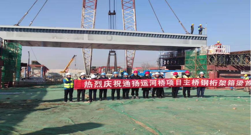 跨通揚(yáng)運(yùn)河橋鋼桁架梁首件吊裝成功